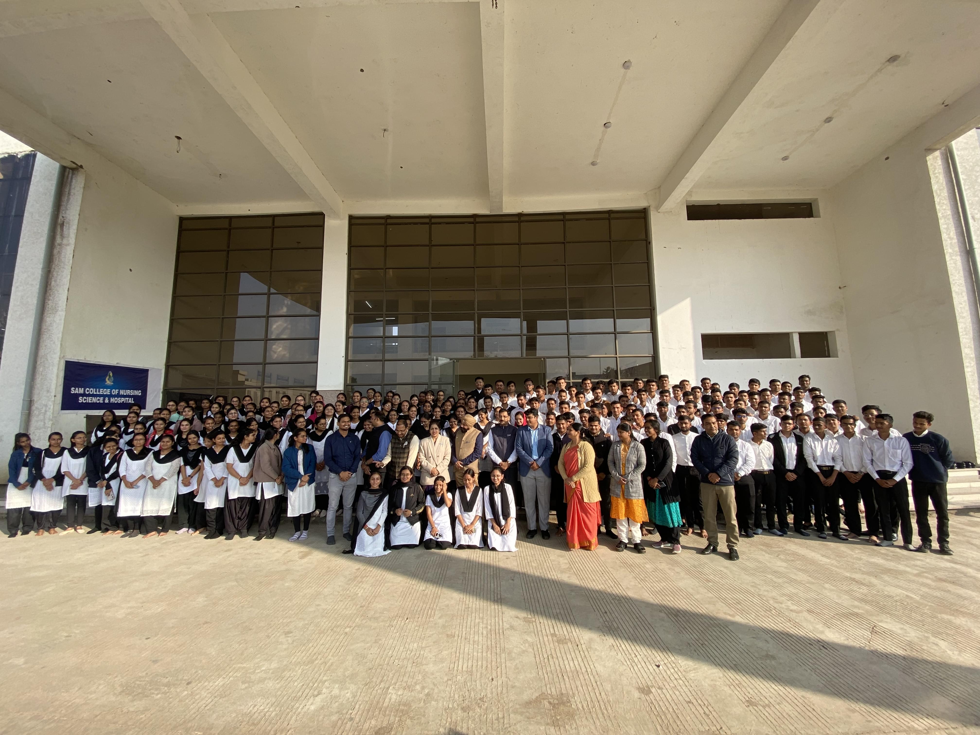 - Community Service- SAM Global University organises blood donation camps, campaigns and skits on social issues, and charity programs to connect the students to people living around and sympathise with the same. There is also an incubation centre for creating a sense of responsibility for people and society in students.
