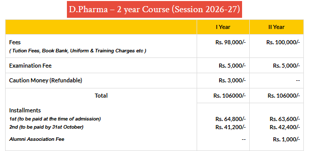 United University Allahabad D.Pharm Pharmacy fees 2026 is ₹ 2.12 Lakhs for the entire course duration.