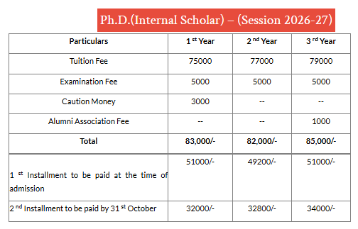 United University Allahabad Ph.D fees 2026 is ₹ 3.28 Lakhs for the entire course duration.