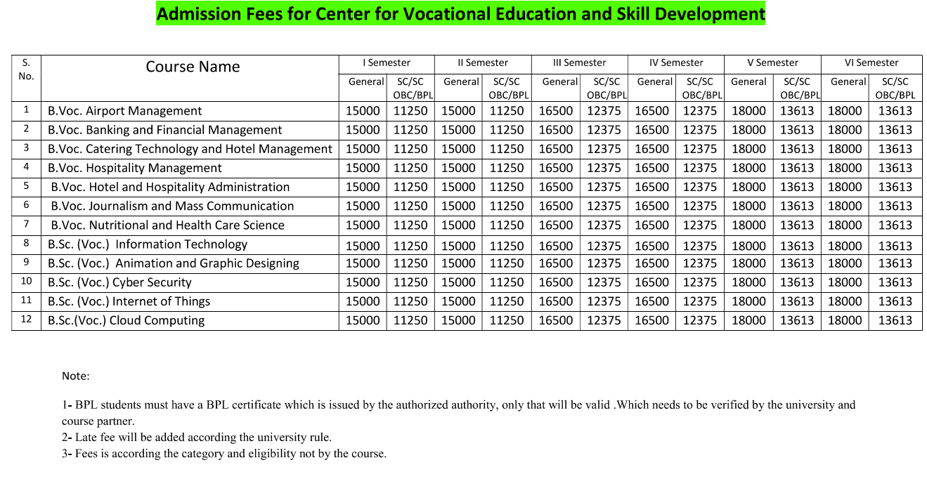 | Semester Wise Fees | ₹15000 | ₹15000 | ₹16500 | ₹16500 | ₹18000 | ₹18000 |