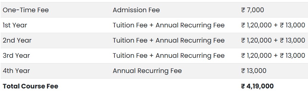 | Fees | Year 1 (in INR) | Year 2 (in INR) | Year 3 (in INR) | Year 4 (in INR) |