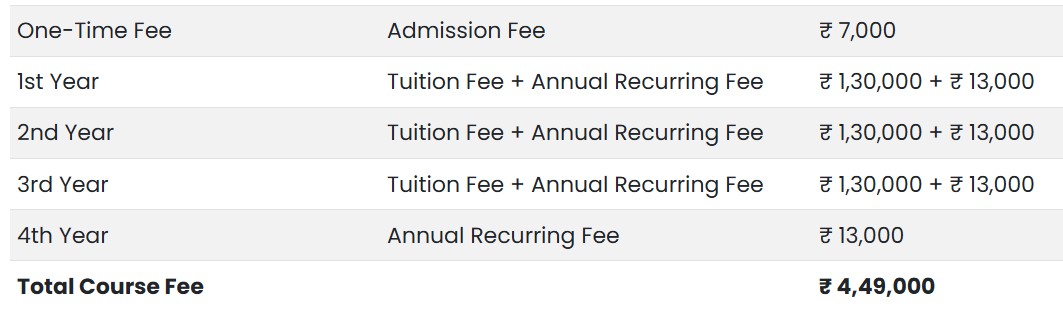 | Fees | Year 1 (in INR) | Year 2 (in INR) | Year 3 (in INR) | Year 4 (in INR) |