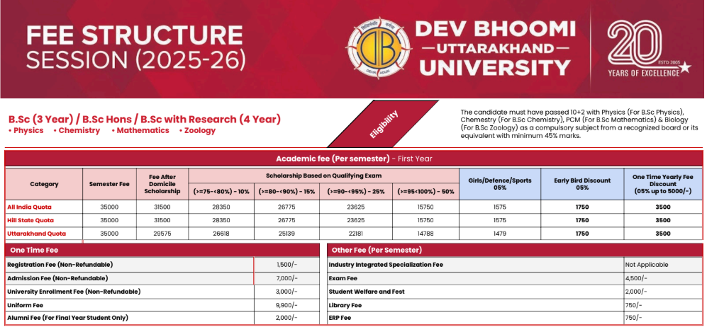 DBUU, DBIT B.Sc Zoology Fees 2025