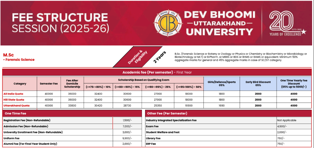 The minimum eligibility for admission to M.Sc Forensic Science at DBUU, DBIT is Graduation with 50%.