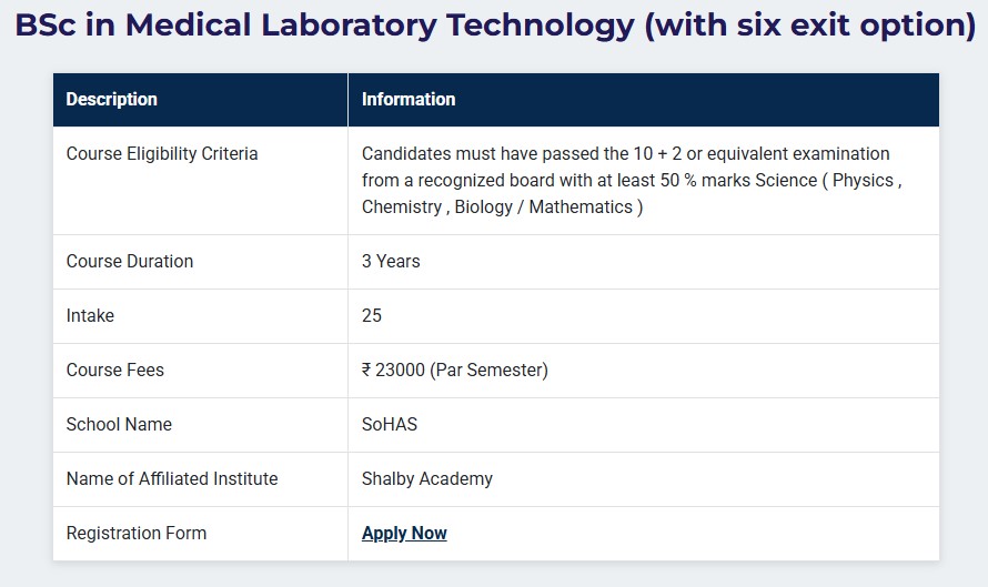Kaushalya The Skill University Ahmedabad offers a total of 25 seats for B.Sc Medical Laboratory Technology. Candidates must have at least 10+2 to be eligible for admissions.