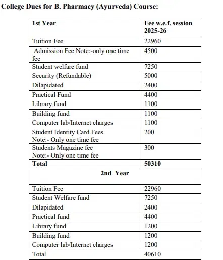 | Date of Admission to Institution for Session 2025 [B.Pharm] (Ayurveda) | Nov 20, 2025 - Nov 21, 2025 |