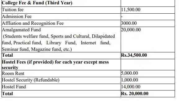 | Fees (2024 - 2025) | Year 1 (in INR) | Year 2 (in INR) | Year 3 (in INR) |