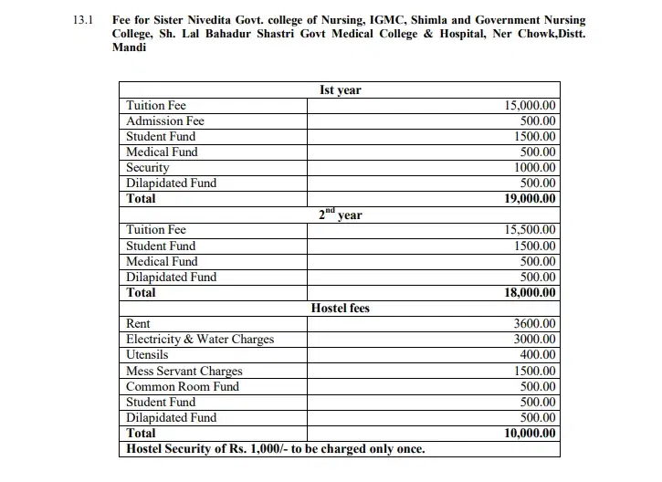 | hostel fee | ₹20,000 |