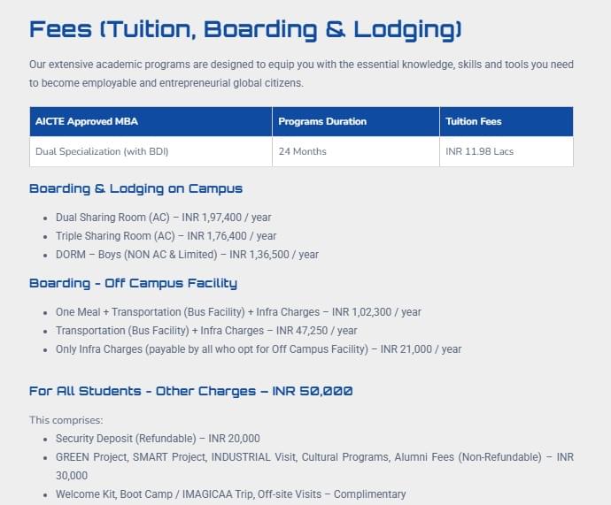 - Candidates need to pay ₹ 12.48 Lakhs in the first year.