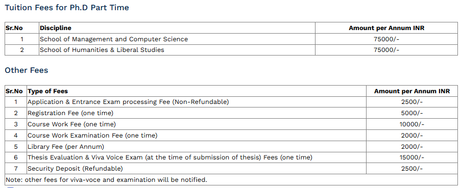 | Fees | Year 1 (in INR) | Year 2 (in INR) | Year 3 (in INR) |