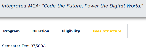 KN University, Gota, Ahmedabad BCA + MCA is offered as 5 Years Full Time program. The minimum eligibility criteria for BCA + MCA is 10+2. The total fees for KN University, Gota, Ahmedabad BCA + MCA in 2025 is ₹ 3.75 Lakhs for the complete course duration, which includes total tuition fees of ₹ 3.75 Lakhs.