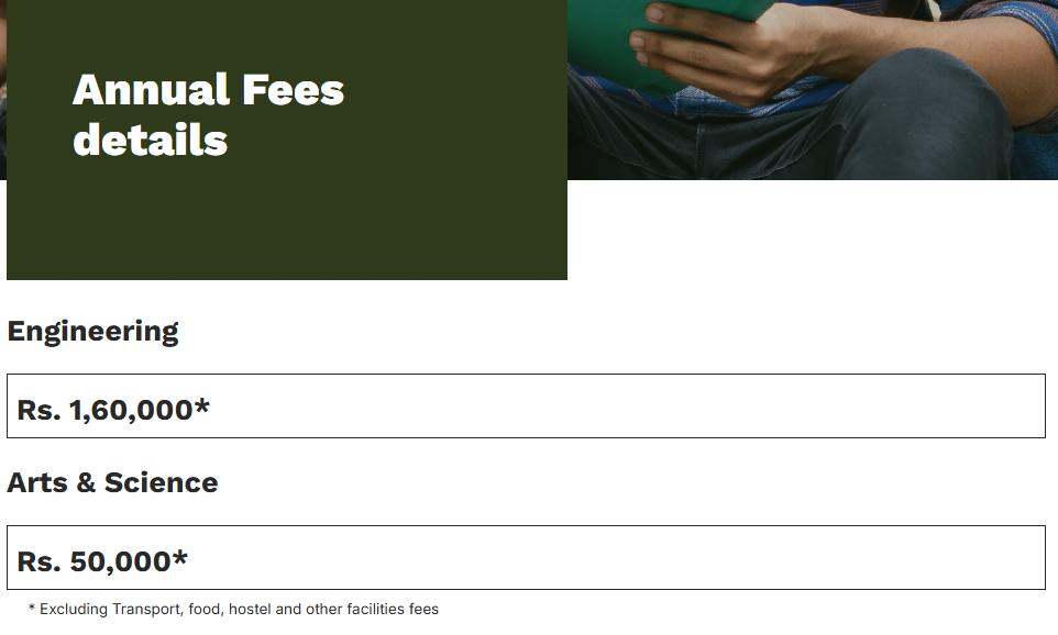 | Fees (2023 - 2024) | Year 1 (in INR) | Year 2 (in INR) | Year 3 (in INR) | Year 4 (in INR) |