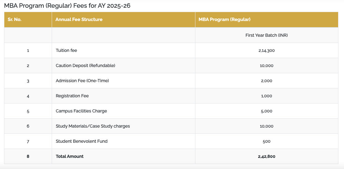 - Candidates need to pay ₹ 2.43 Lakhs in the first year.