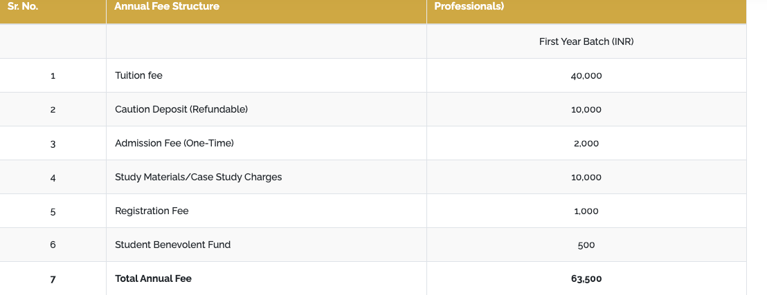- This includes a total tuition fee of ₹ 1.2 Lakhs, Caution Fees of ₹ 10,000, Other Fees of ₹ 36,500.