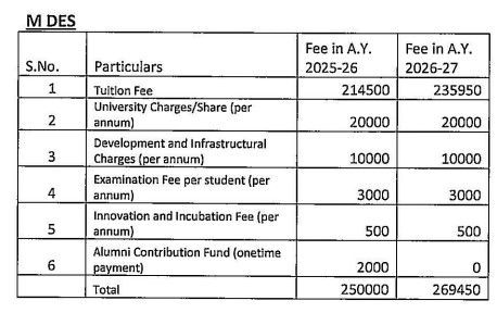 | Fees (2025 - 2026) | Year 1 (in INR) | Year 2 (in INR) |