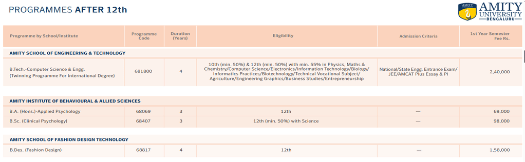 | Amity University Bangalore | ₹ 5.88 Lakhs |
