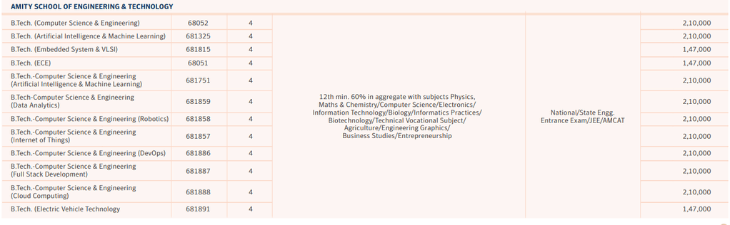 Students have an option to pursue B.Tech Computer Science and Engineering (Artificial Intelligence & Machine Learning) from similar colleges such as Amity University Bangalore, Amity University Mohali, Amity University Ranchi. Similar to Amity University Bangalore, B.Tech Computer Science and Engineering (Artificial Intelligence & Machine Learning) at these group colleges is offered Full Time for a duration of 4 Years.