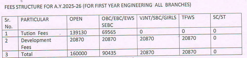 | Fees (2025 - 2026) | Year 1 (in INR) | Year 2 (in INR) | Year 3 (in INR) |