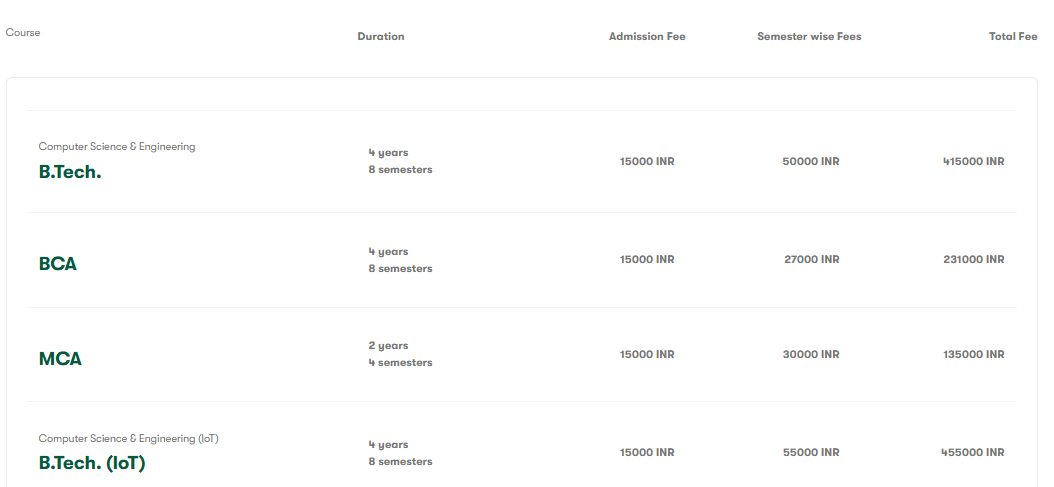 Earlier, BCA fees at Techno India University, Tripura Agartala was ₹ 2.26 Lakhs (in 2024) for the entire course duration. This shows a fee increase of ₹ 1.89 Lakhs over the year.