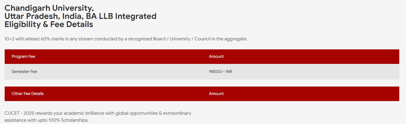 | eligibility | 10+2 + CUCET |