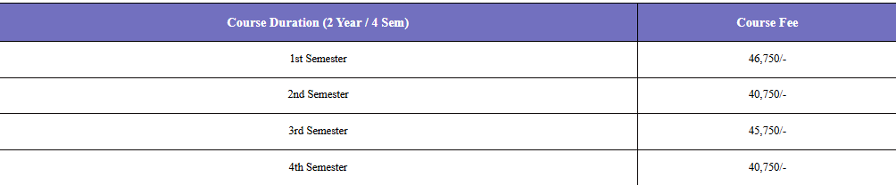 - The total fees for MBA is ₹ 1.74 Lakhs.