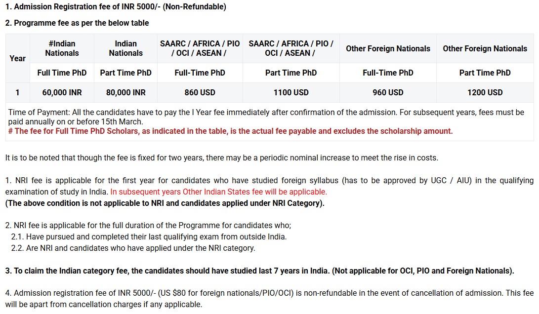 | Fee Type | Total Amount (INR) |