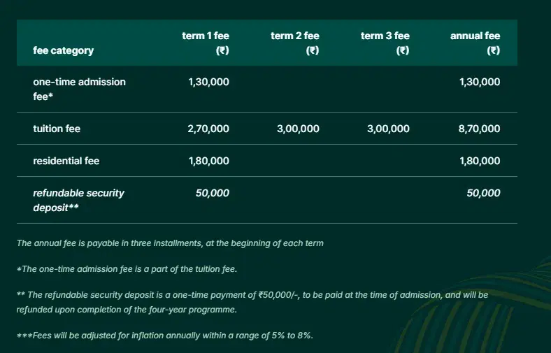 | Fees (2025 - 2026) | Year 1 (in INR) | Year 2 (in INR) | Year 3 (in INR) | Year 4 (in INR) |