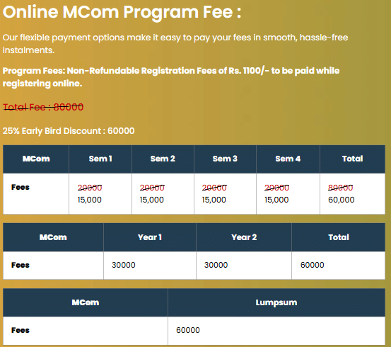 M.Com fees 2026 is ₹ 64,100 for the entire course duration.