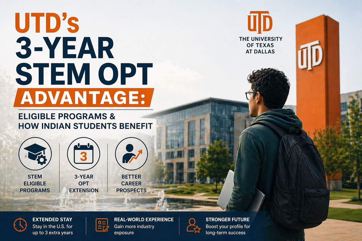 For Indian students on an F-1 visa, the clock starts ticking the moment you graduate. You have 12 months of Optional Practical Training (OPT) to find a job, prove your value, and hope your employer files an H-1B petition in time. That window is tight — especially with H-1B lottery odds that have dropped sharply in recent years. The University of Texas at Dallas (UTD) changes this equation. If you enroll in one of UTD's STEM-designated programs, you become eligible for a 24-month STEM OPT extension on top of your initial 12 months. That is a total of 36 months of US work authorization — three full years to build your career, secure sponsorship, and navigate the H-1B process without the pressure of a 12-month countdown. This article breaks down exactly which UTD programs qualify, what the application process looks like, what Indian students need to watch out for, and how to make the most of this advantage.