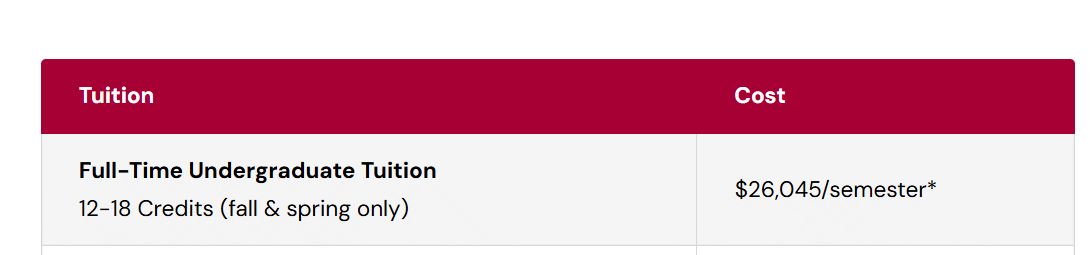 The tuition fee for BA Sports Communication and Media at Sacred Heart University is as follows: