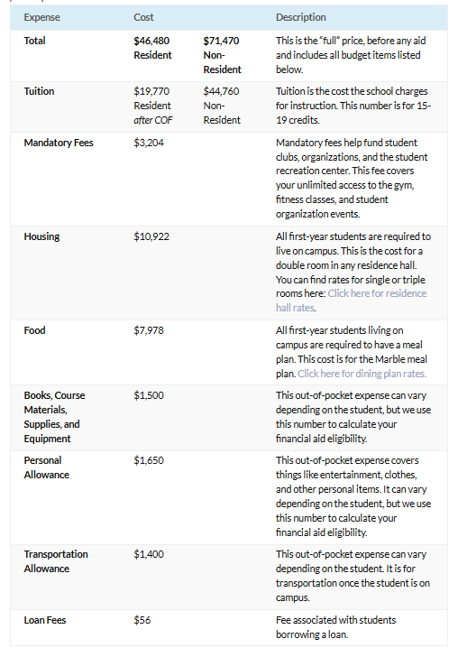 The other expenses for B.S Chemical and Biochemical Engineering at Colorado School of Mines is as follows: