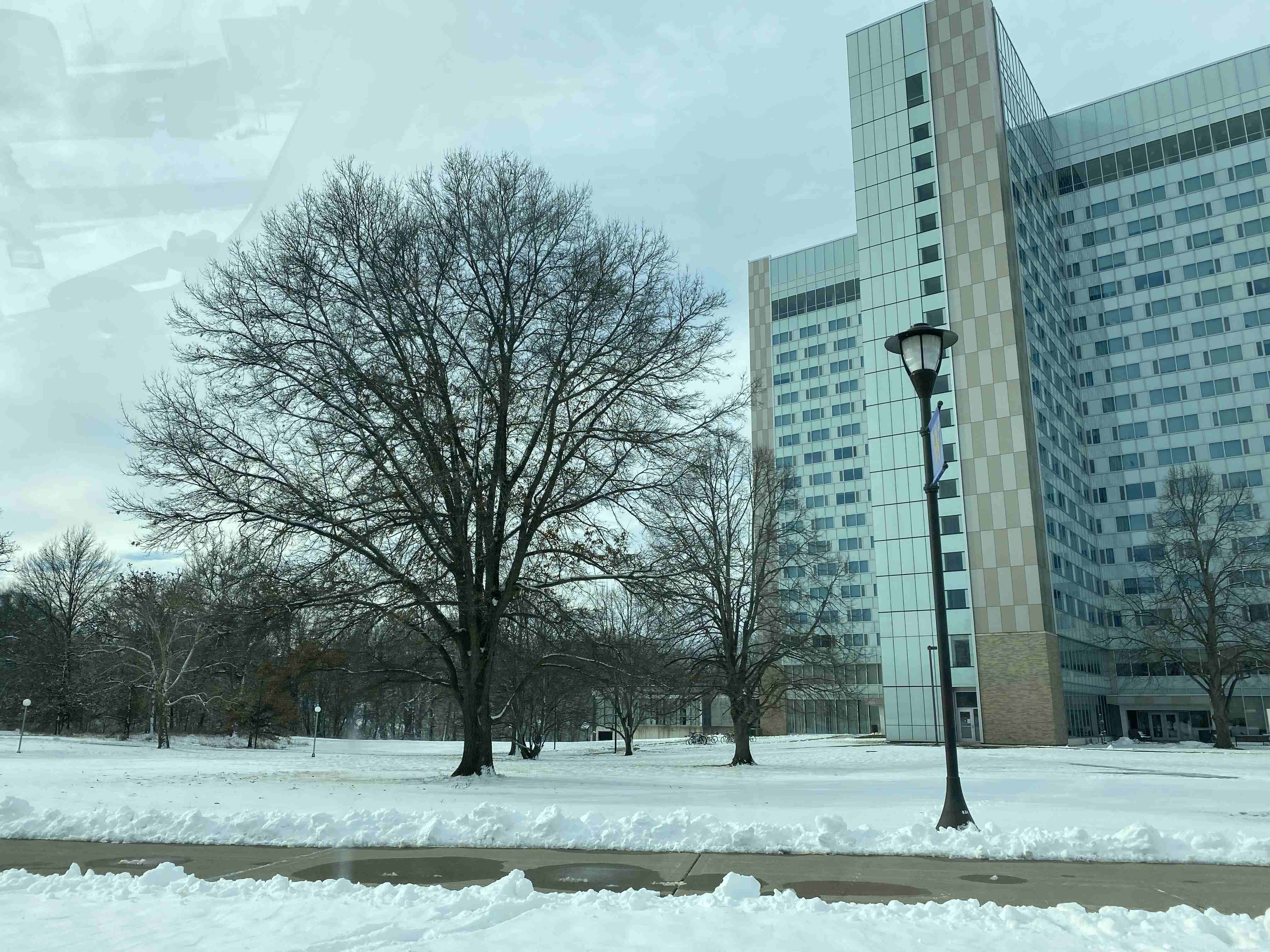 - While the main roads are cleared of snow, the maintenance of the campus roads during snowfall could be better. They do get cleared eventually, but not always on time.