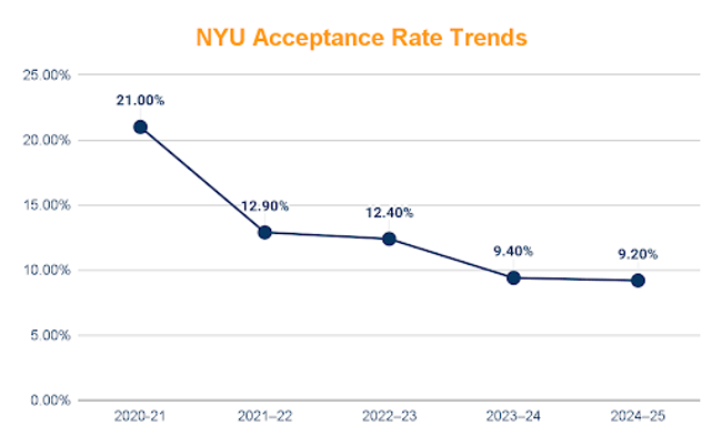 Ans: The NYU acceptance rate for the 2024–25 academic year is 9.2%.