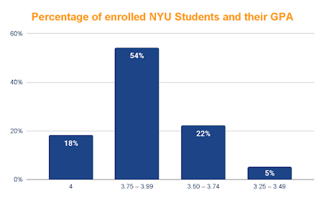 A GPA of 3.5 or above is generally considered competitive for NYU admissions.