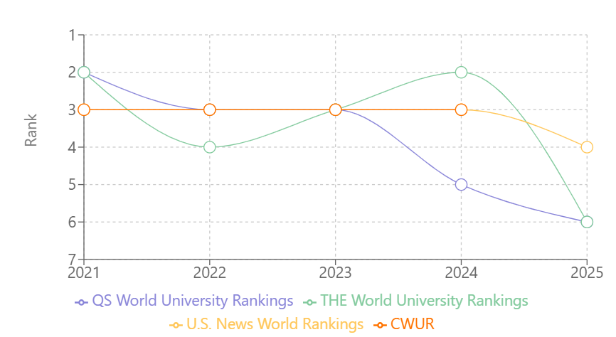 | QS World University Rankings | #6 | #5 | #3 | #3 | #2 |