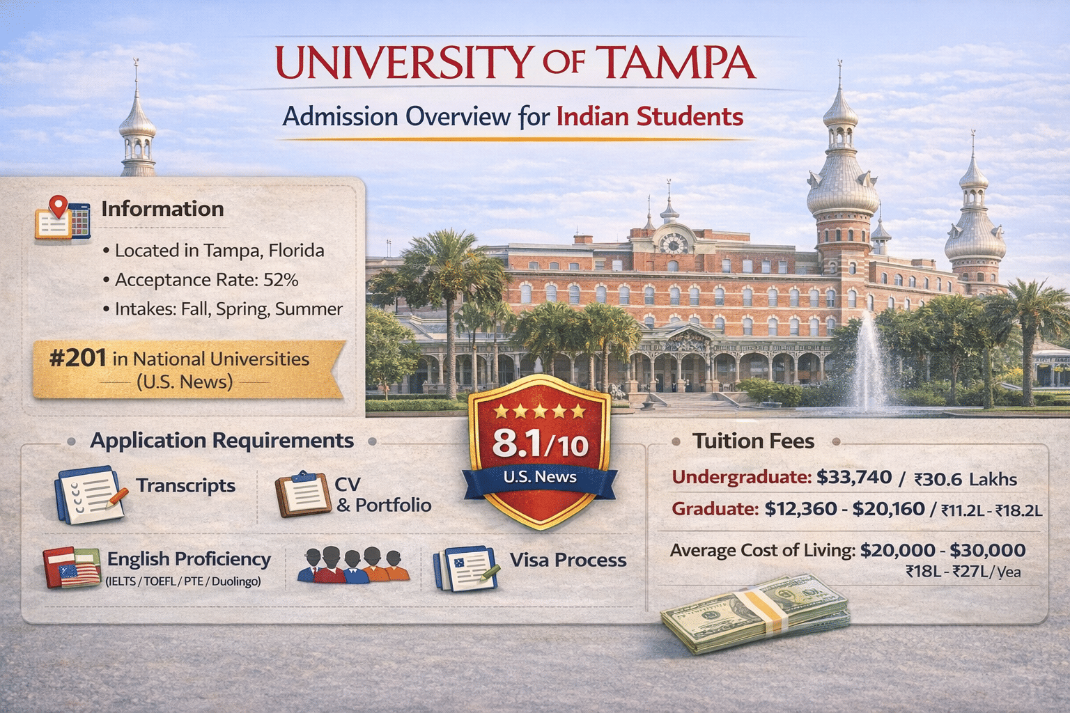 Indian students planning to join the University of Tampa in 2026 need to make sure to arrange all the required documents on time. You also need to prepare financial proof for your I‑20 and keep track of deadlines for early or regular admission.